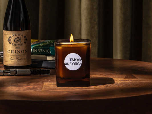 Inspired by the luxurious bath amenities the Lower East Side-based salon Takamichi Hair developed for Nine Orchard, this scented candle is clean and stimulating.